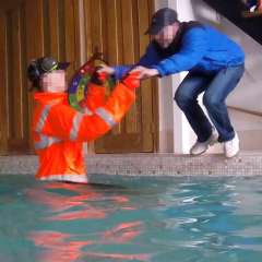 MistressSplash was plunged into a dunk tank of water after the target was hit by JerryG